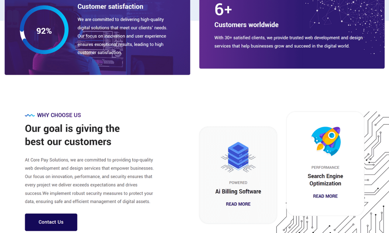 CorePay Solution Inc is a professionally built IT services website offering web development, AI billing software, UX/UI design, and digital solutions. With a modern, conversion-optimized design and structured service offerings, this site is ideal for agencies, freelancers, or entrepreneurs looking to scale a service-based business.