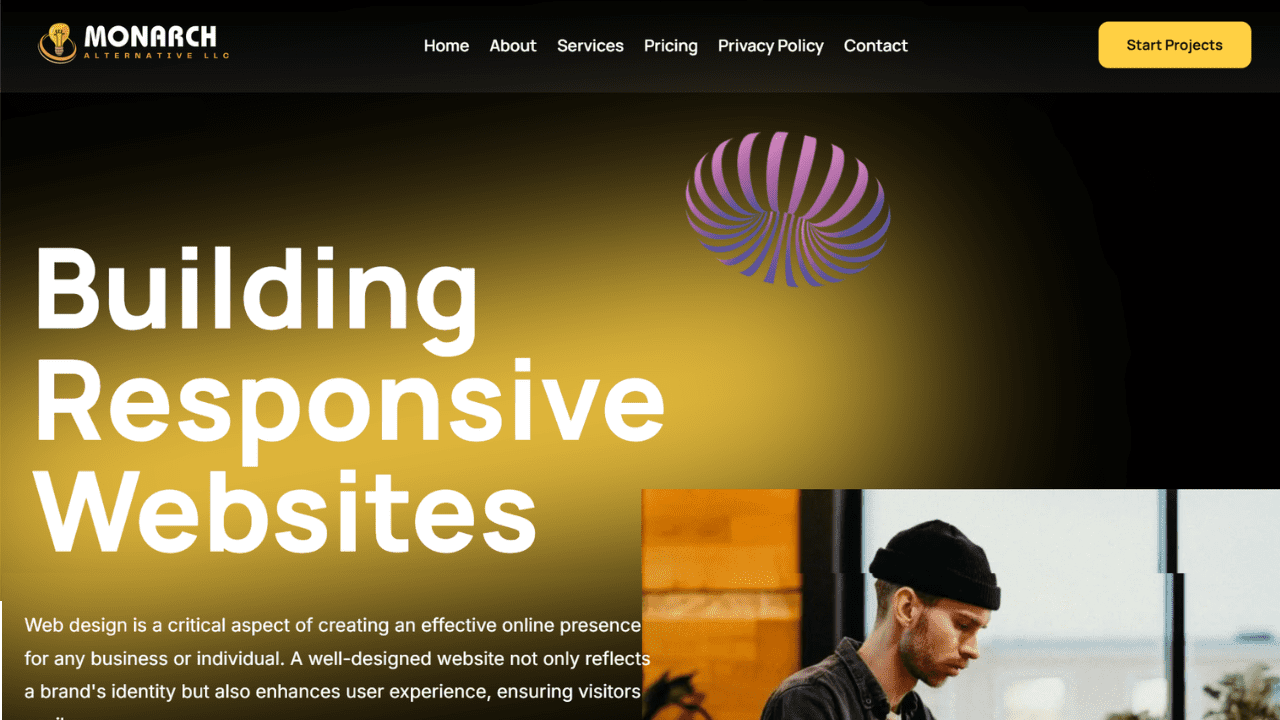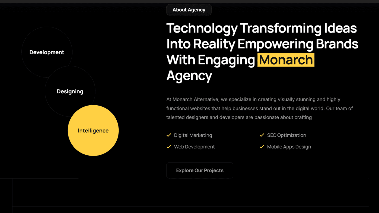 Monarch Alternative Inc is a professionally developed and fully branded digital agency website built to serve clients globally. The business model is centered around web design and creative services, with steady growth and strong revenue generation.